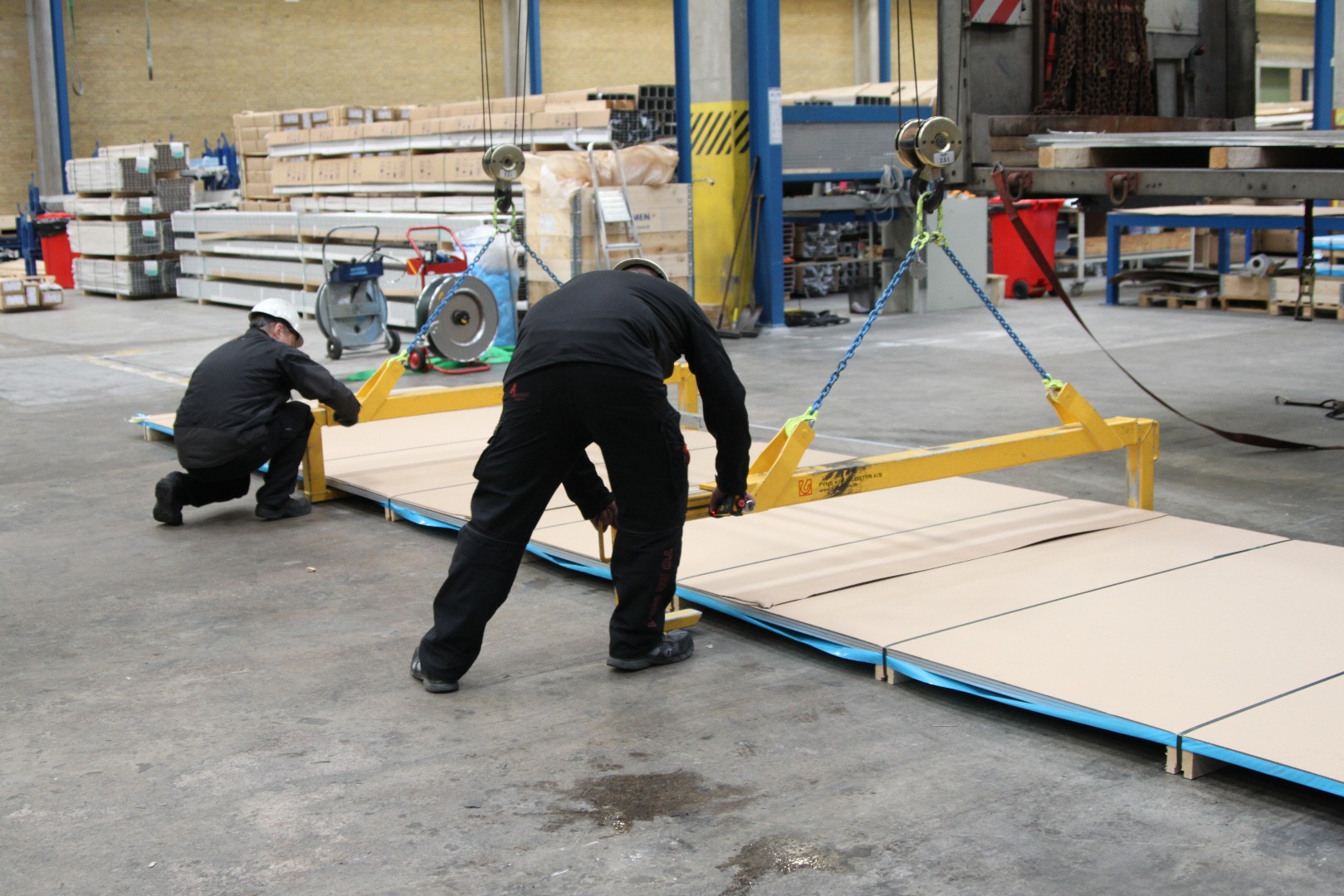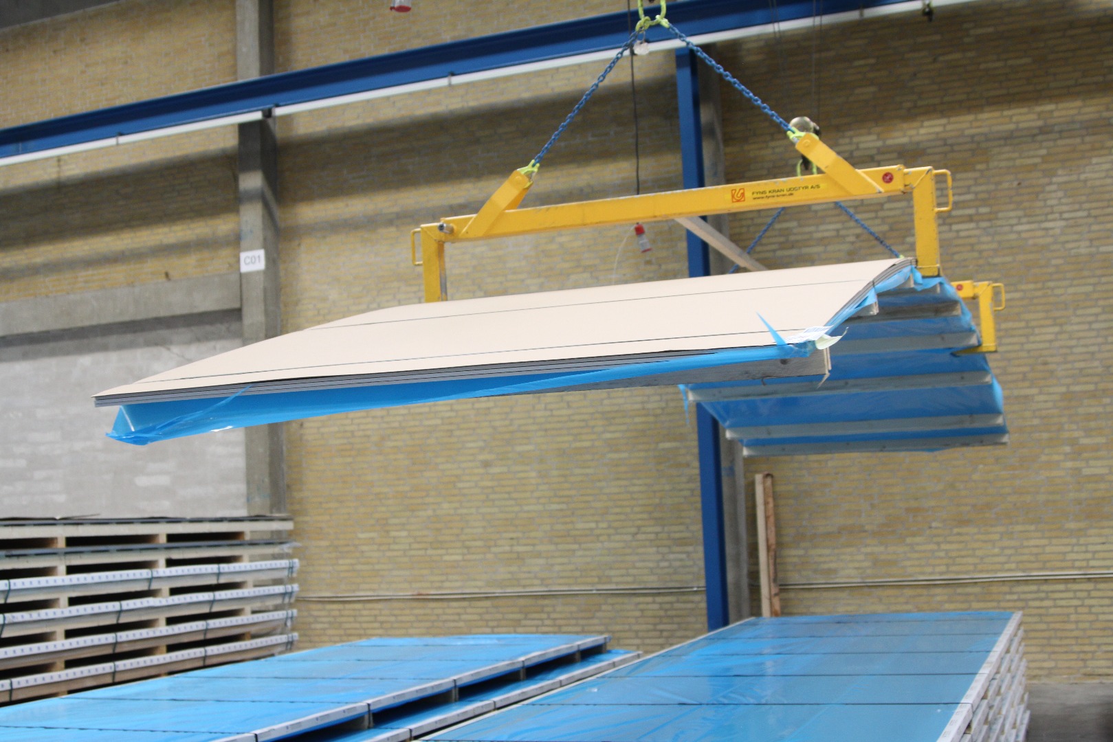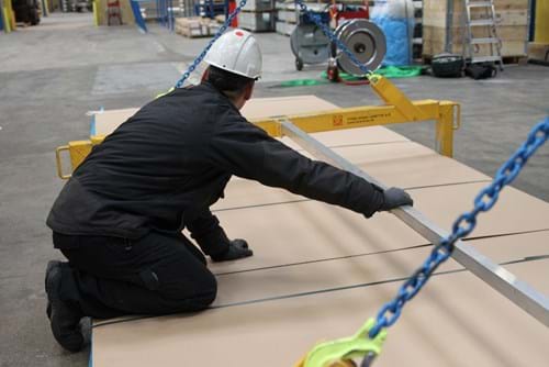 - Orderen bil bli losses plate for plate i en veldig spesifikk rekkefølge. Dette sikrer at platene kan løftes med sugekopper i den rekkefølgen som er planlagt for å passe inn i kundens produksjon. Det er i tillegg et referansenummer på hver plate som er plassert på forskjellige måter. Emballeringen er naturligvis tidkrevende, men den er ekstremt viktig for kunden. Samtidig innebærer kravene til logistikk samhandling mellom kunden og vårt lager og logistikkavdeling.