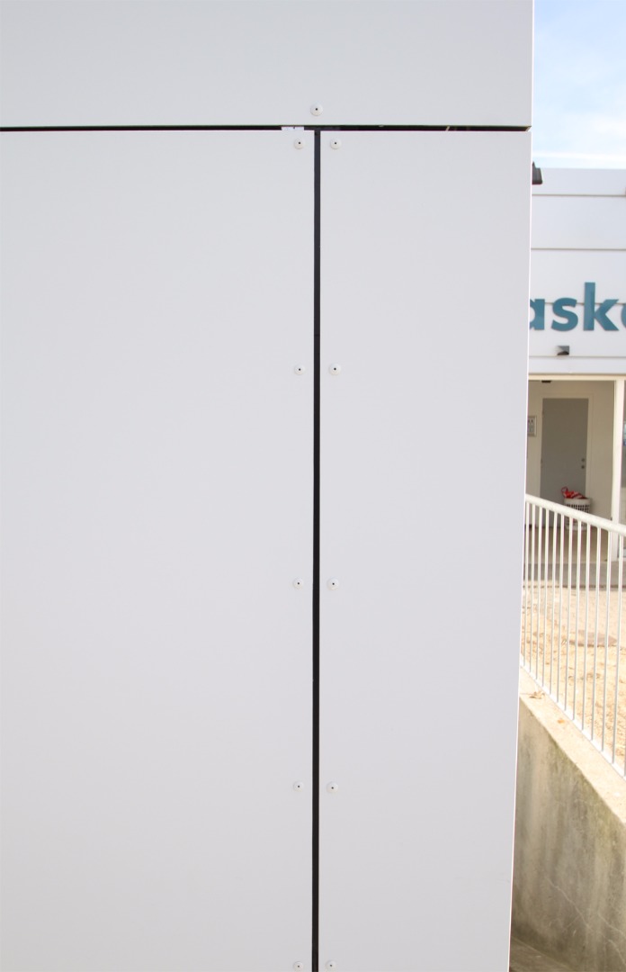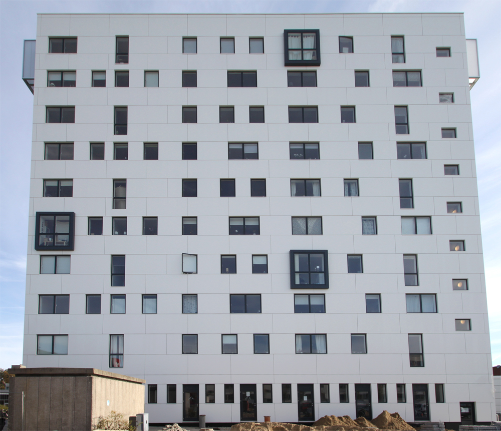 Alumeco har levert aluminiumsprofiler og hvitlakkerte ALUCOBOND® A2 sandwich-plater. ALUCOBOND® A2 er den eneste brannsikre komposittplaten i aluminium som brukes verden over.