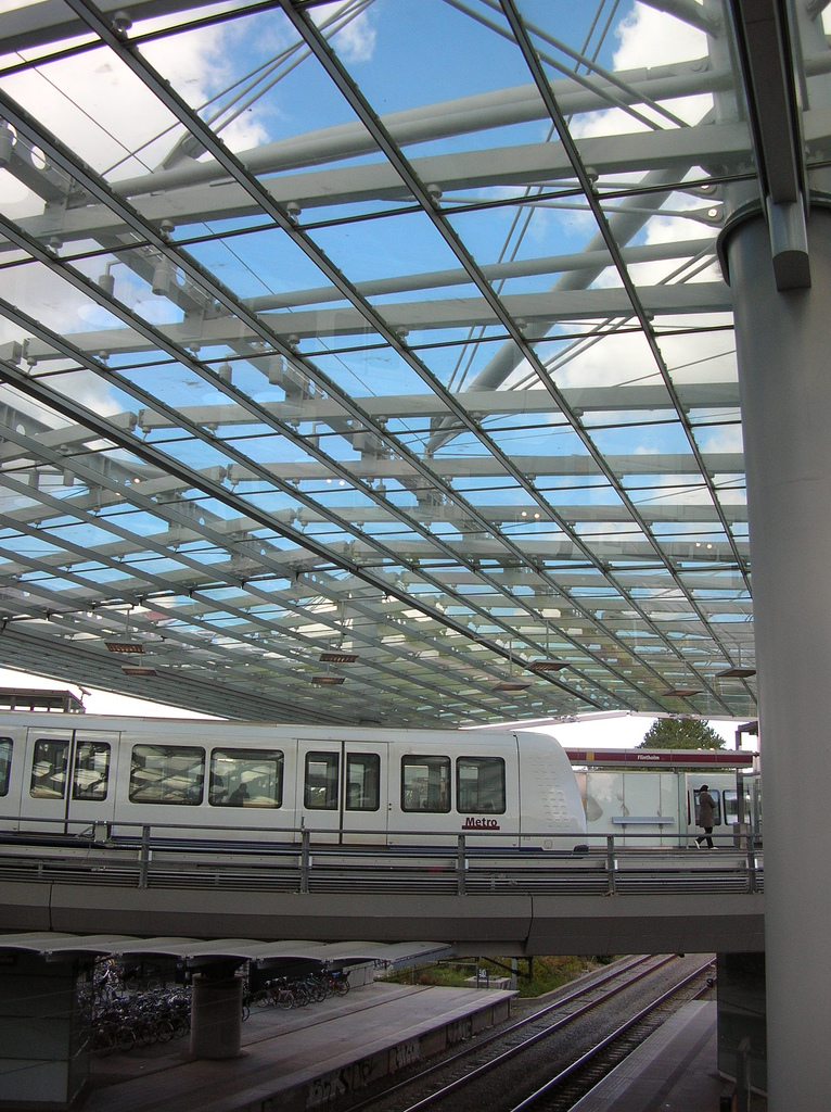 5000 m2 stor takkonstruksjon på Flintholm Station, København, bygget med spesialprofiler i aluminium for å sikre lav vekt og stor styrke. Alumeco har levert 50 tonn med aluminiumsprofiler til prosjektet.