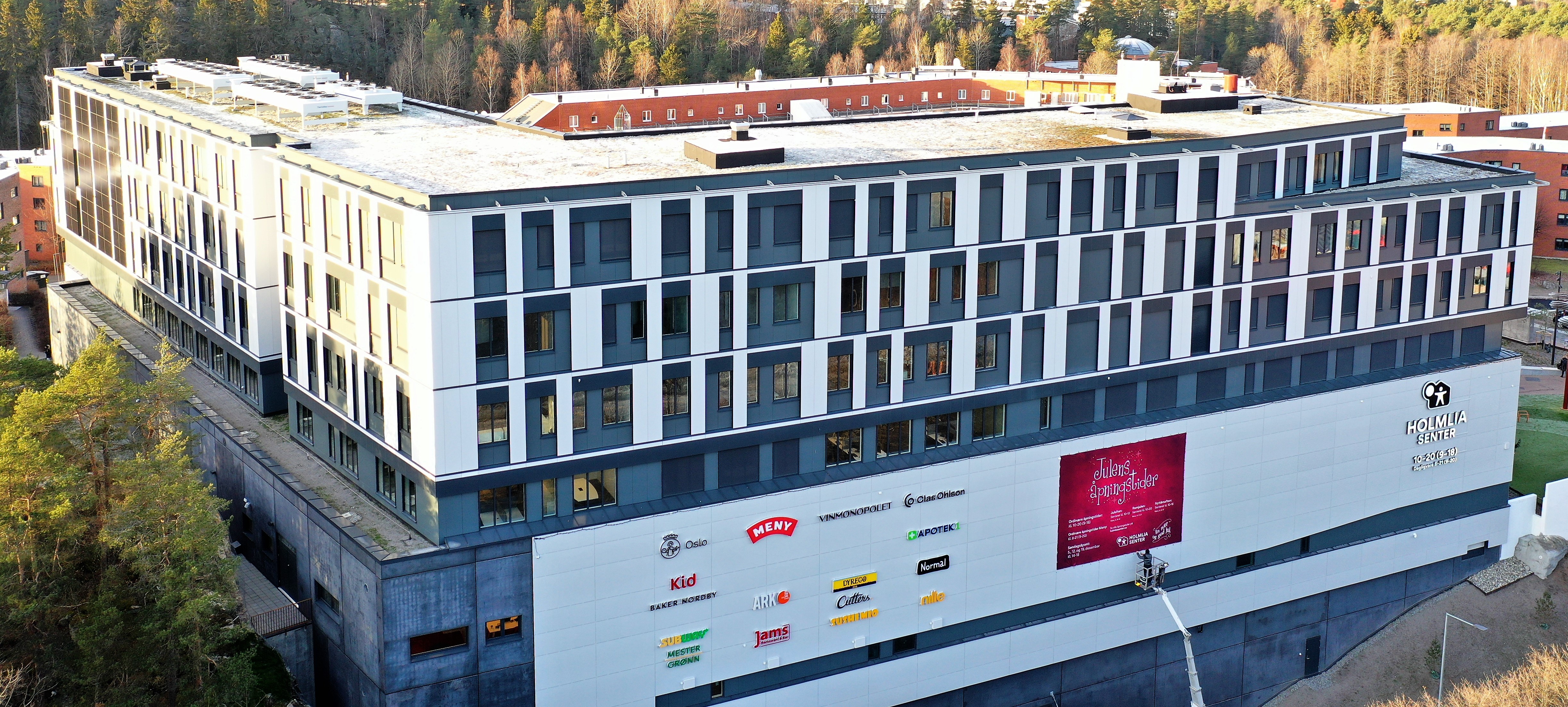 Til dette kjøpesenteret i Oslo har Alumeco Norge levert paneler, både flate og pregede, i tre forskjellige farger fra STACBOND.