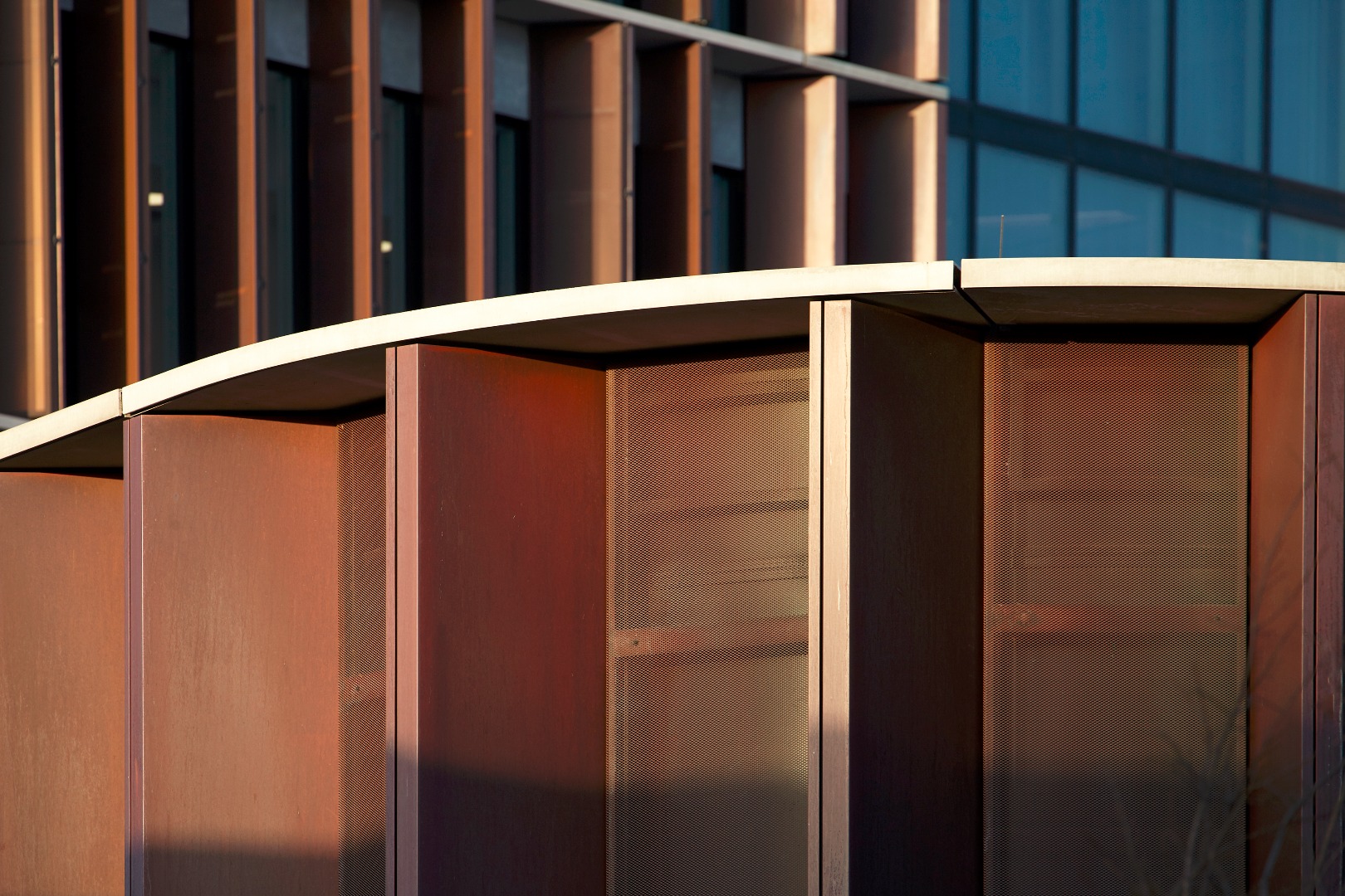 Den arkitektoniske formen på bygget blir understreket på en elegant måte av metallet, som sikrer at Panum også i fremtiden vil fremstå som en estestisk perle.