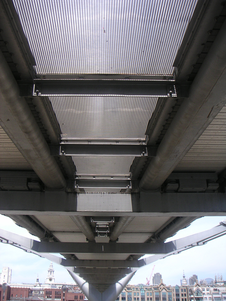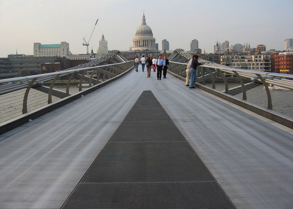 Gangbroen er 325 m lang og bygget av tre hovedseksjoner (81 m, 144 m og 108 m). Broseksjonene henger i et unikt kabelsystem som bare er 2,3 m høyt på den 144 m lange seksjonen. Dette gir Millenniumsbroen dens karakteristiske utseende.