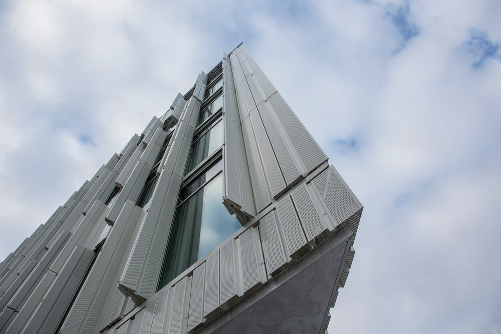 I dag er aluminium en naturlig komponent i bygningsfasader, og med FN-byen som det beste eksempelet: Hele fasaden er nesten dekket av aluminium. Et sentralt element i uttrykker har vært en fundamental tanke for 3XN, helt fra idéfasen. Ideen var å lage solavskjermingen på fasaden som dens varemerke.