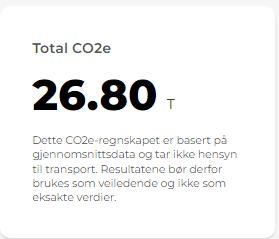 Tallene er beregnet i CO2e, som er standarden for CO2- regnskapet. Tallene er basert på gjennomsnittstall og data fra våre leverandører.